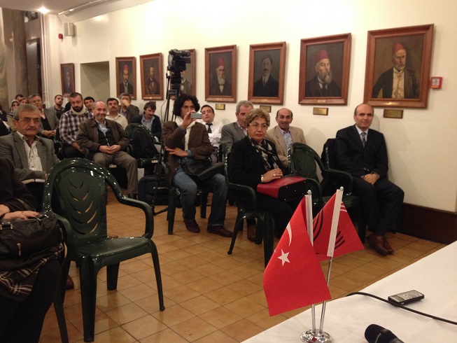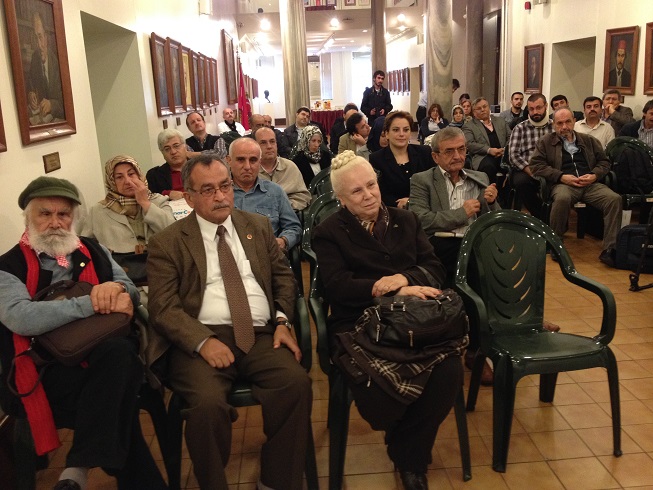 Elif Naci toplantısının konuşmacıları ortada Gürbüz Azak, Mehmet Nuri Yardım ve Muammer Erkul