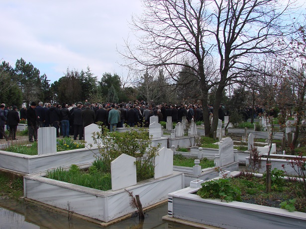 Şaşılacak bir kalabalık buldum camide. Çevreden gelen başkanlar, komutanlar, iş adamları, esnaf, ve geniş bir cemaat. Gazetemizin Tekirdağ merkez ofisinden, Çorlu’dan ve Çerkezköy’deki ofis elemanları da gelip beni duygulandırmışlardı… Bir anda el birliğiyle tutup kaldırdık, ben de tabutun altında buldum kendimi ve aklıma gelen bütün büyüklerin isimlerini söyleye söyleye, başım üzerindeki dayımı cenaze aracına bindirdik… Velimeşe kabristanının çevresi gerçekten çok geniştir; tarihi koruluk, bir kaç stadyum genişliğinde yayılmış meydanda bina yoktur. Çevresinde de geniş vasıta yolları vardır ama ben, değil her iki yanında arabalar parketmiş bu cadde ve yolları; Velimeşe-Yanıkağıl yolu, yani ana caddedeki okul ile durak arasında, bir arabalık yer bulup arka arkaya yanaşabildim.