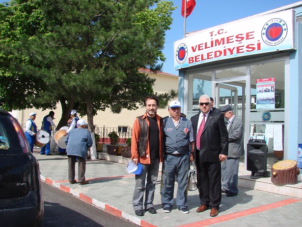 Velimeşe Belediye Başkan Rasim Yüksel de giriyor kareye, cazgırı da aramıza hep birlikte fotoğraf çektiriyoruz.