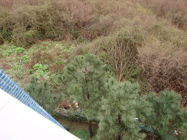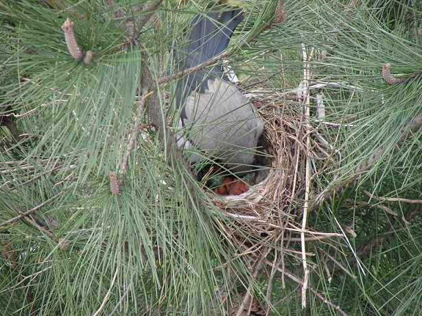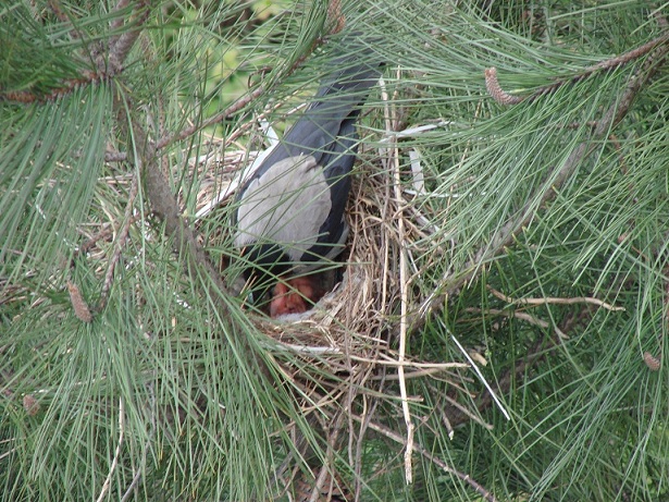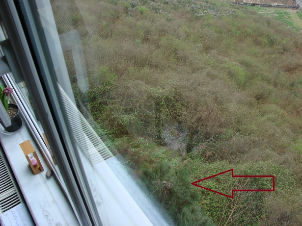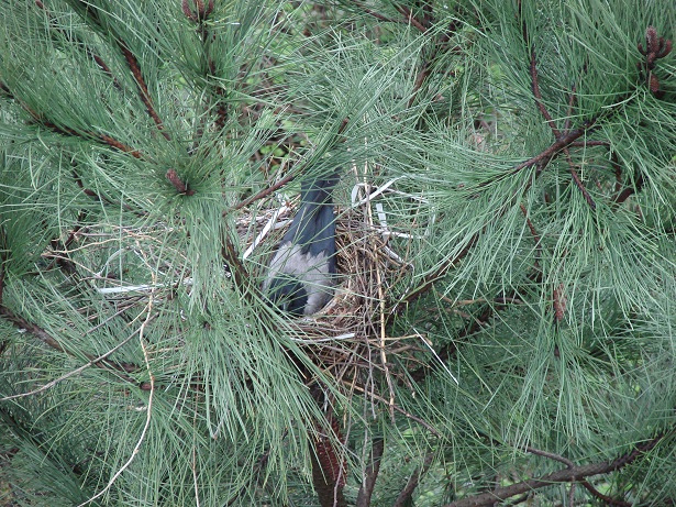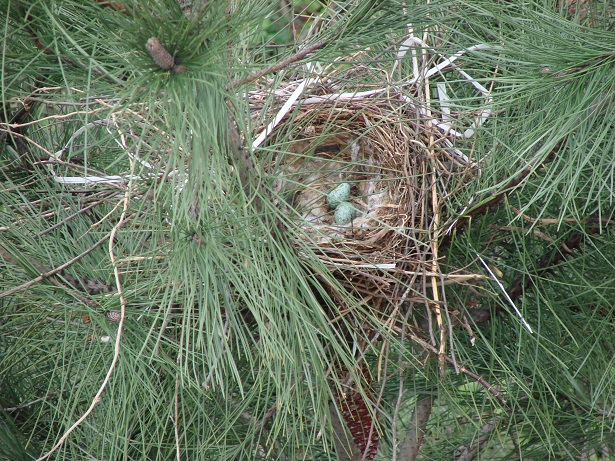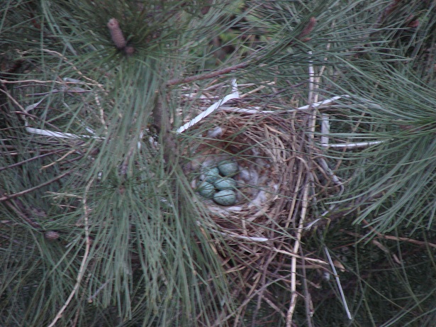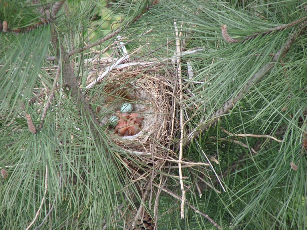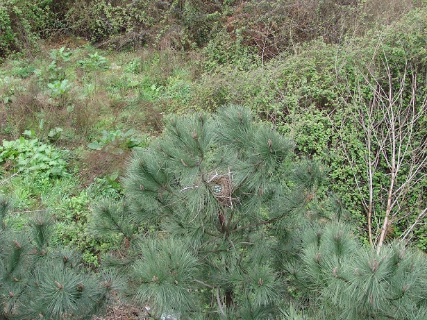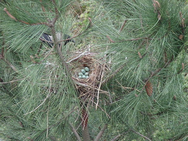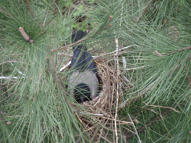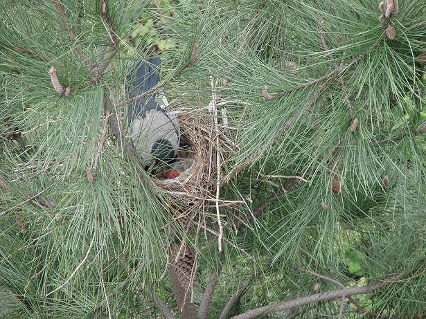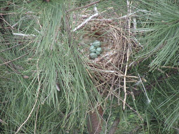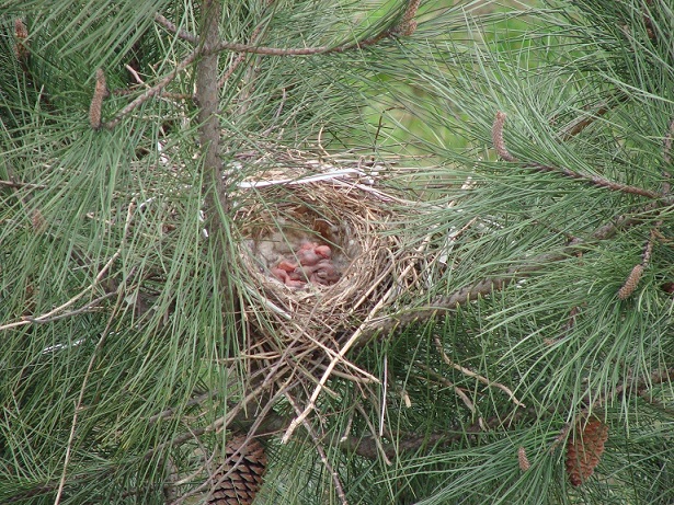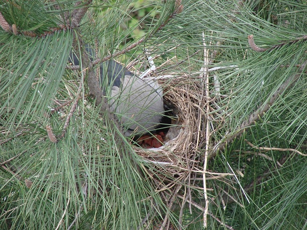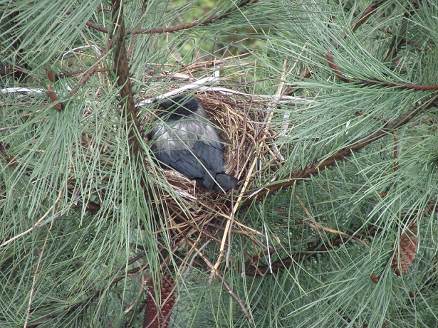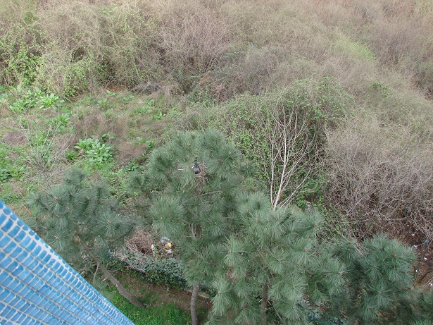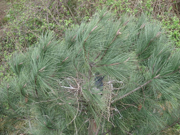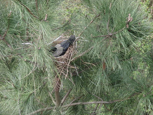 Hava güneşli. Pencereden dışarı bakarken aşağıdaki çam ağaçlarından birinin üzerinde farkettim; yuva var…