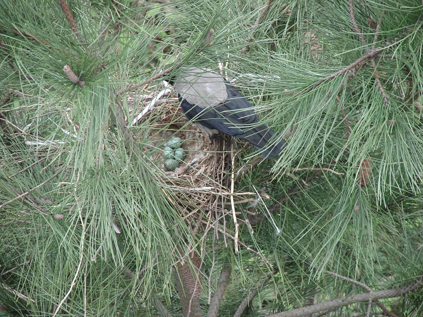 Yedi tane yumurta bir yuvada öyle uzun süre başıboş bırakılmaz. Onun için dişi karga hiç ihmal etmiyor, bir kaç tur atıp hemen geliyor yuvaya…