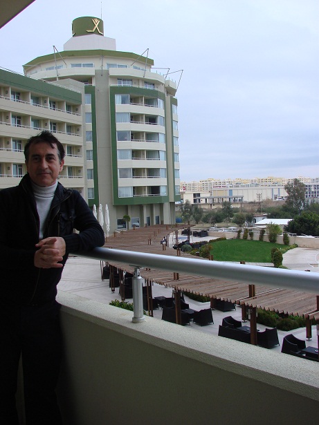 Aşağıdaki karede arkamda, ilginç çatı biçimiyle görülen de yine, bu bölgede inşa edilmiş ünlü otellerden KremlinPalas. Lara bölgesindeki bu gerçekten büyük ve gerçekten çok kaliteli hizmet sunan oteller haklı bir üne sahip.